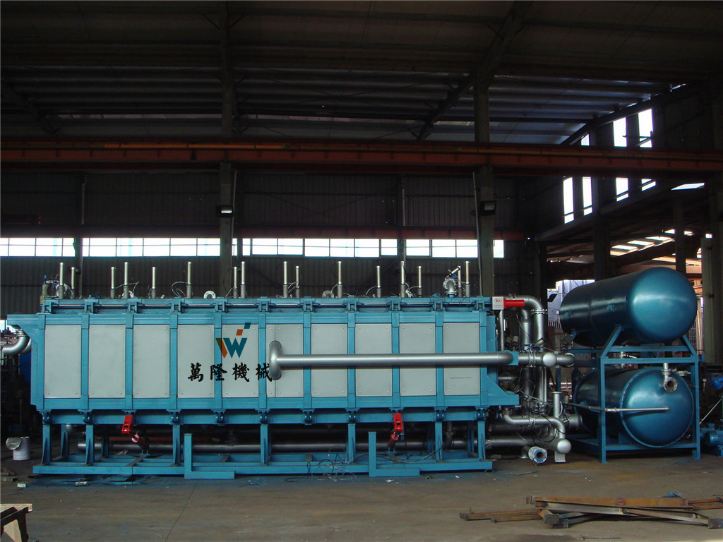3. 該機采用國外先進的EPS‘真空穿透加熱’和 本公司研發(fā)的‘脈動加熱’成型工藝,穿透能力強,板材成型快,粘接性好,蒸汽耗量低,保證產(chǎn)品內(nèi)外一致。冷卻采用真空冷卻技術(shù)大大縮短了成型周期,每塊泡沫板生產(chǎn)周期為4-6分鐘,能適應生產(chǎn)6-40kg/m3的泡塑板材,板材厚度可達1米。